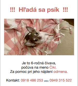 Hľadá sa psík 6ročná čivava