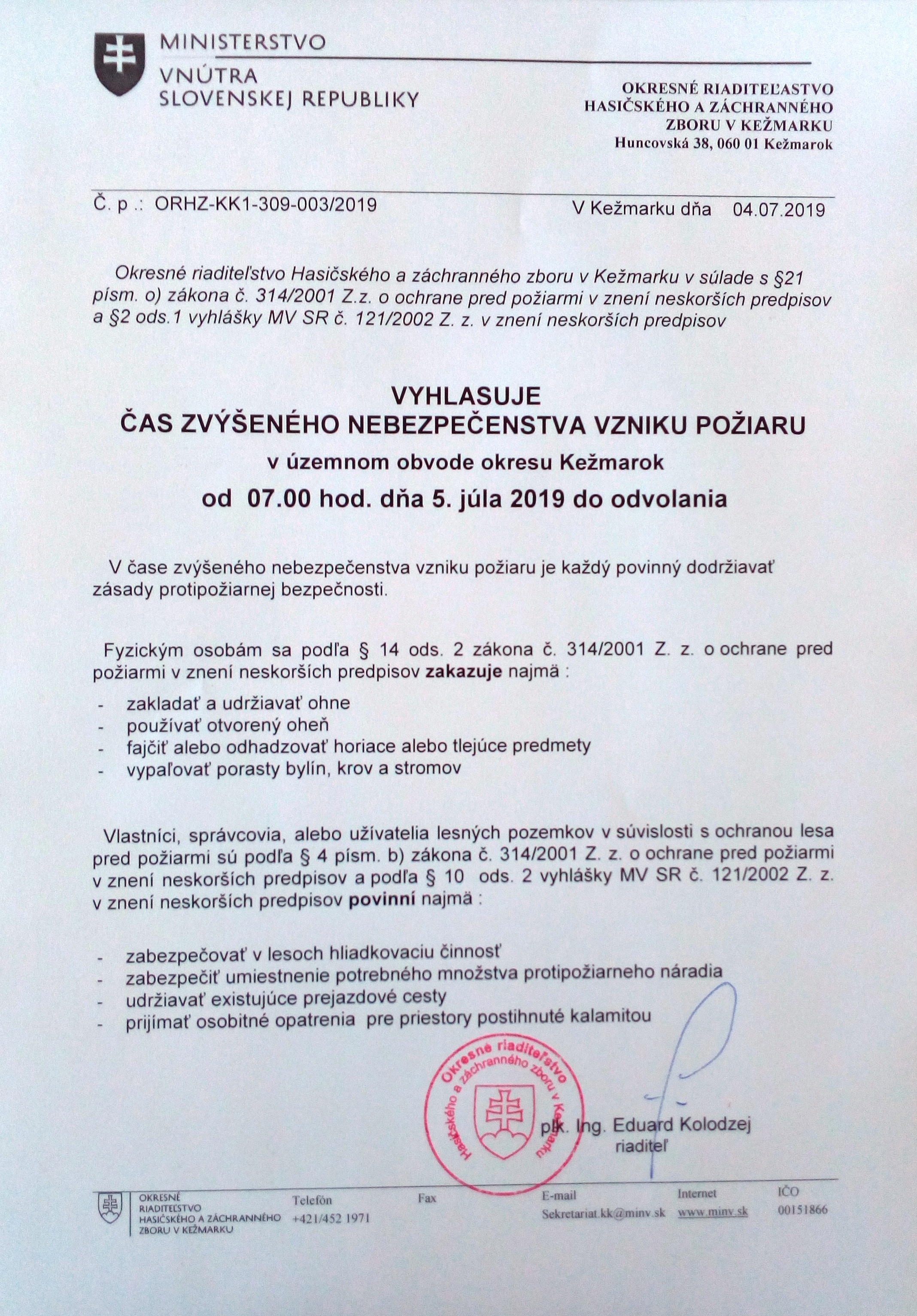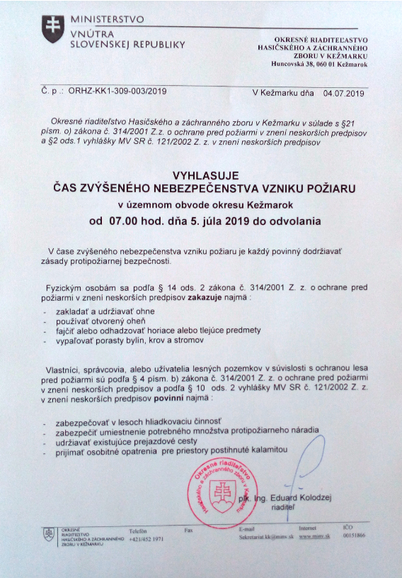 Nebezpečenstvo vzniku požiaru