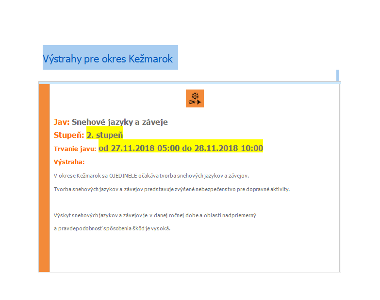 Výstrahy pre okres Kežmarok