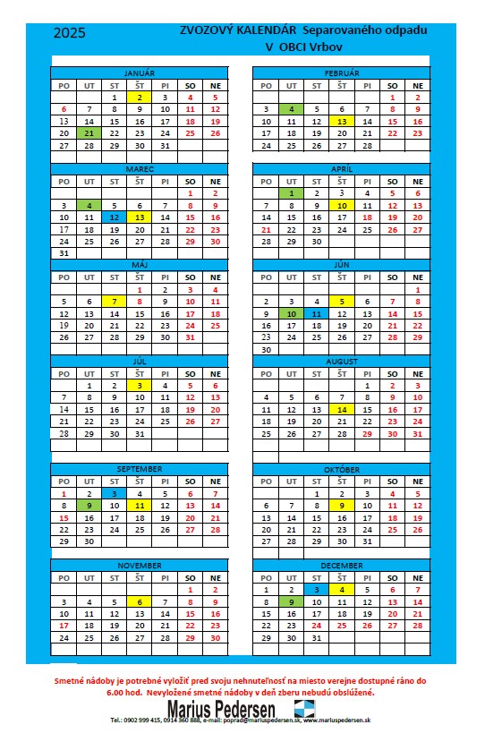 aktualizovaný kalendár separovaného odpadu